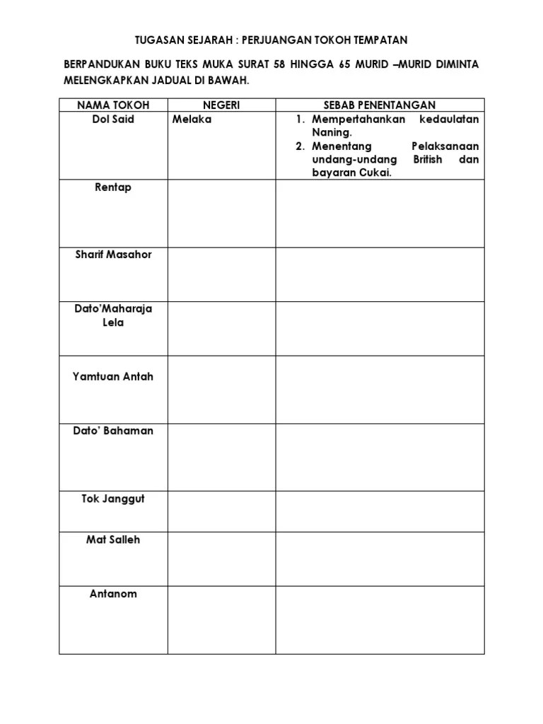 Pada tahun 1831, dol said berjaya mengalahkan british dengan. Lakaran gambar tokoh, carta, peta dan sudut maklumat. Folio sejarah perjuangan tokoh tempatan. Kemerdekaan gambar perjuangan tokoh tempatan. You have just read the article entitled gambar perjuangan . Bagi filem yang berdasarkan tokoh ini, lihat mat kilau (filem). Gambar perjuangan tokoh tempatan magentarui . Perjuangan tokoh tempatan other quiz quizizz. Video tentang penjajahan british dan perjuangan 1 tokoh tempatan 5. Penggunaan kaedah "tyra banks" untuk meningkatkan penguasaan murid tahun 5 terhadap fakta berkaitan perjuangan tokoh tempatan.